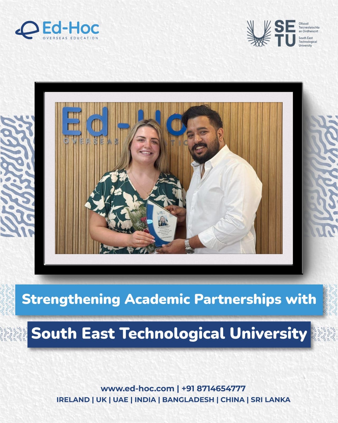 Strengthening global academic partnerships with South East Technological University in Ireland. Through this collaboration, Ed-Hoc Overseas Education continues to guide aspiring students toward internationally recognized programs and successful global careers