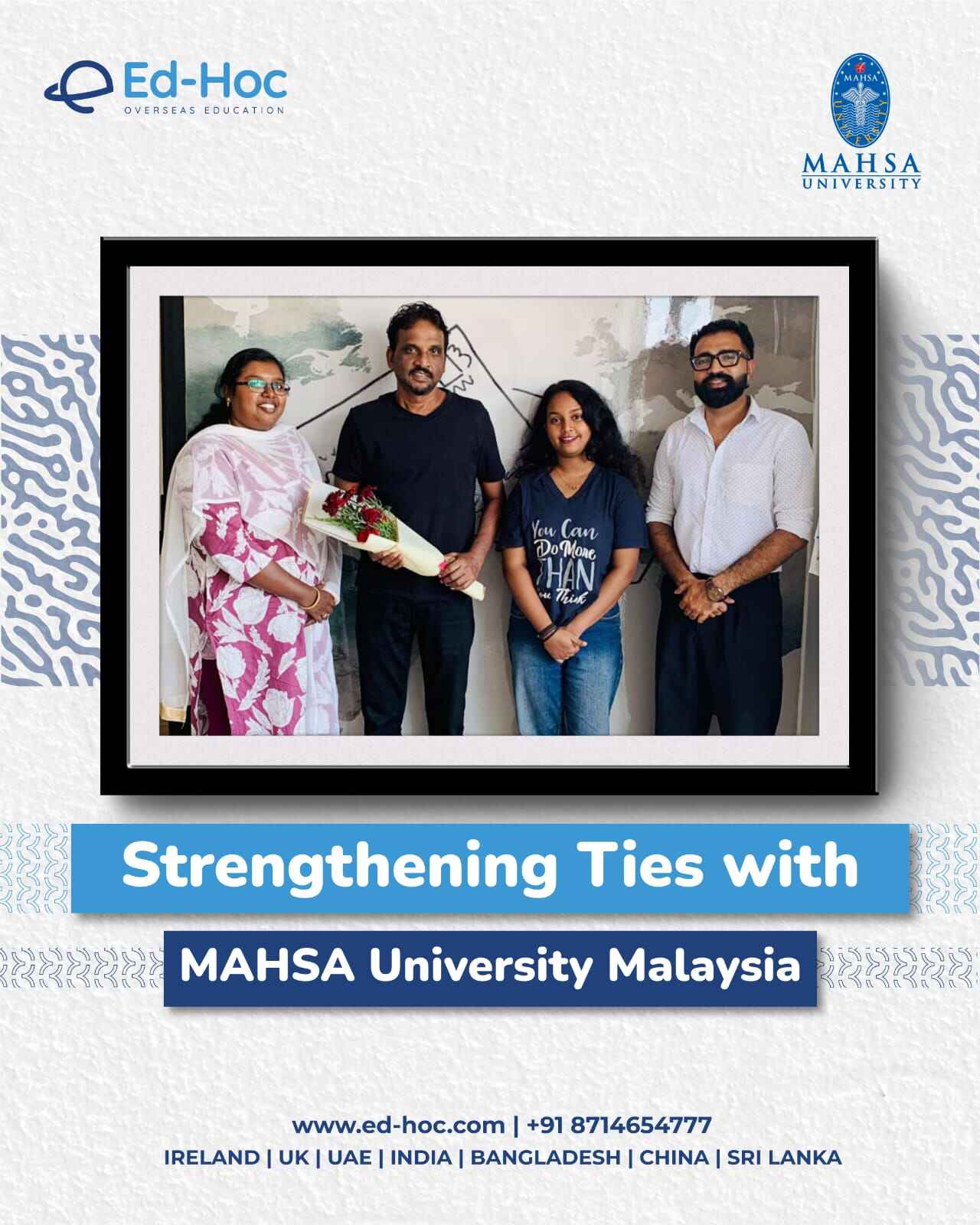 We are proud to strengthen our partnership with **MAHSA University, one of the leading universities in Malaysia. This collaboration reflects our commitment to providing students with access to high-quality international education and globally recognized academic opportunities.