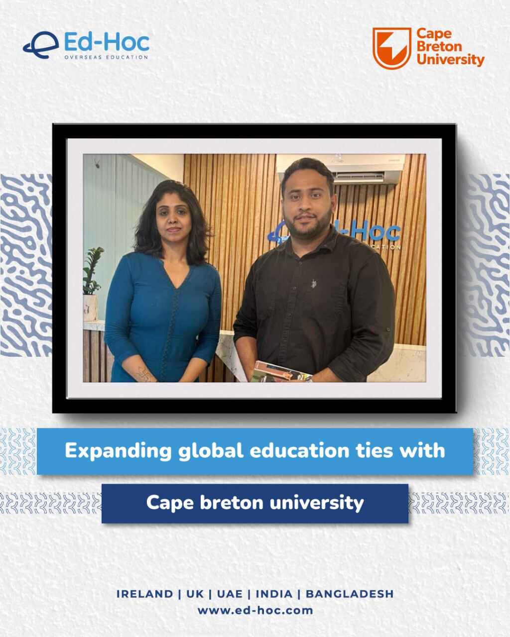 A proud moment for Ed-Hoc Overseas Education as we expand our collaboration with Cape Breton University in Canada, creating more pathways for students to access quality international education and build successful futures. This partnership reflects our commitment to connecting students with globally recognized universities, innovative learning environments, and valuable career opportunities abroad.