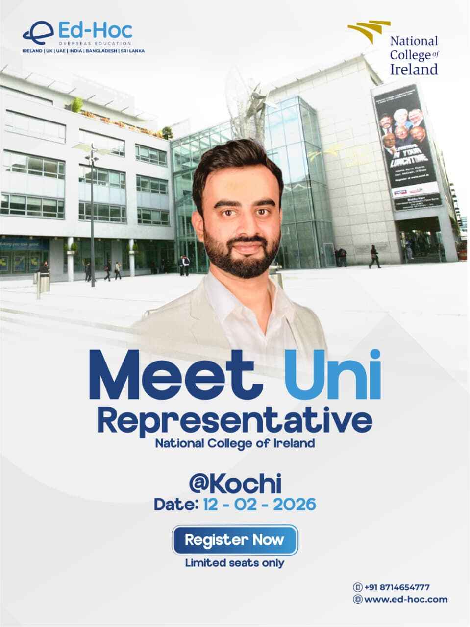 Organised by Ed-Hoc Overseas Education with media partner 24 News, this virtual expo takes place on February 10 & 11, 2025, offering students direct access to university representatives, course details, admission guidance, scholarships, visa support, and career pathways in Ireland.