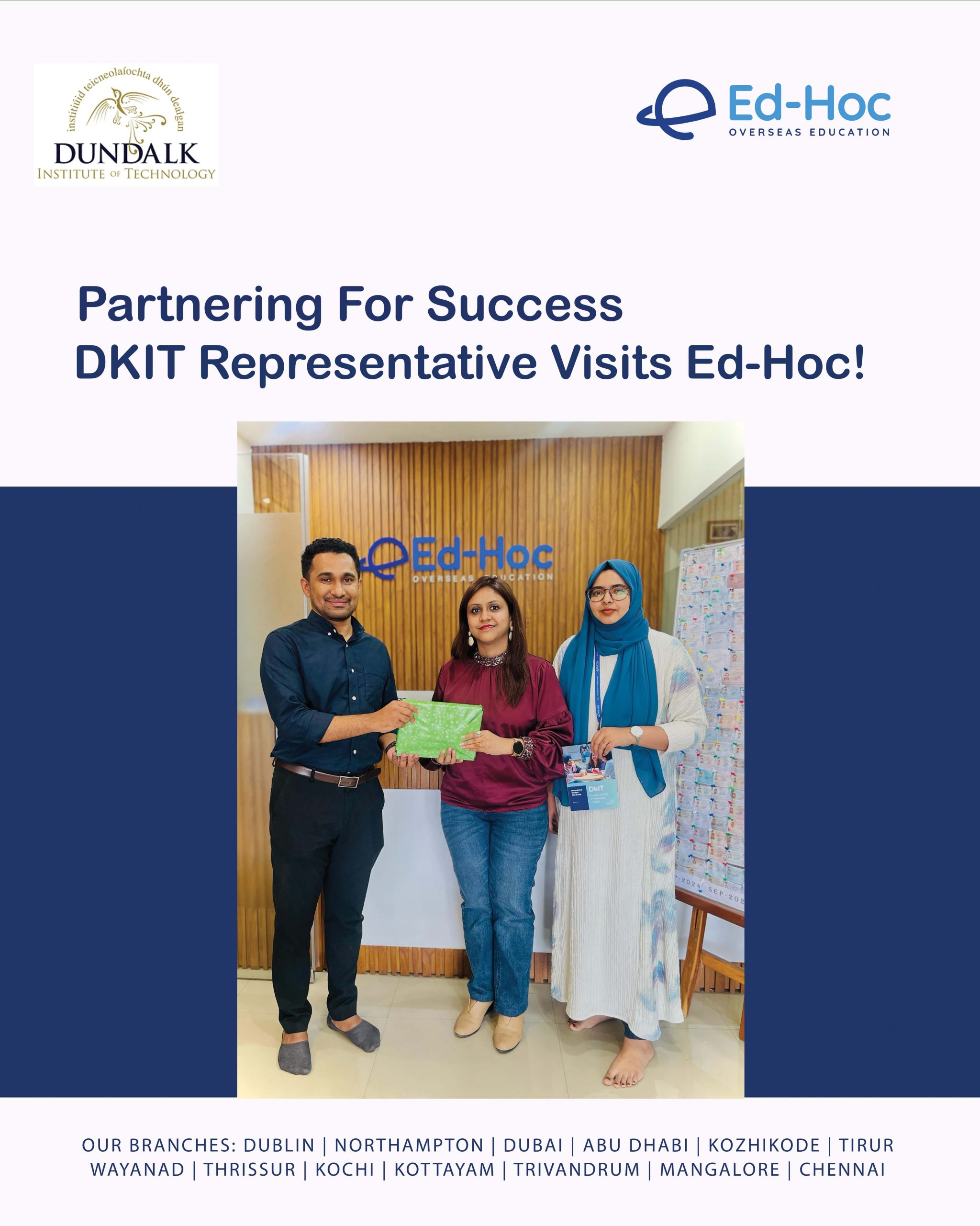 A representative from Dundalk Institute of Technology (DKIT) visited Ed-Hoc Overseas Education to further strengthen their partnership, offering students enhanced international education opportunities. With branches in major cities globally, Ed-Hoc continues to support students in their study abroad endeavors.