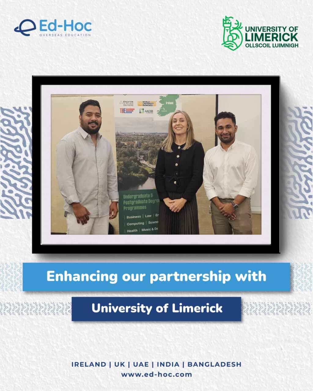 Ed-Hoc Overseas Education is proud to strengthen its collaboration with the University of Limerick, a distinguished Irish institution recognised for its innovative teaching, research excellence, and strong industry connections.