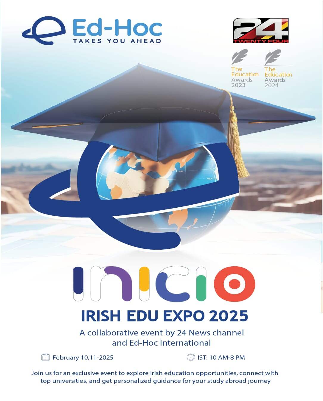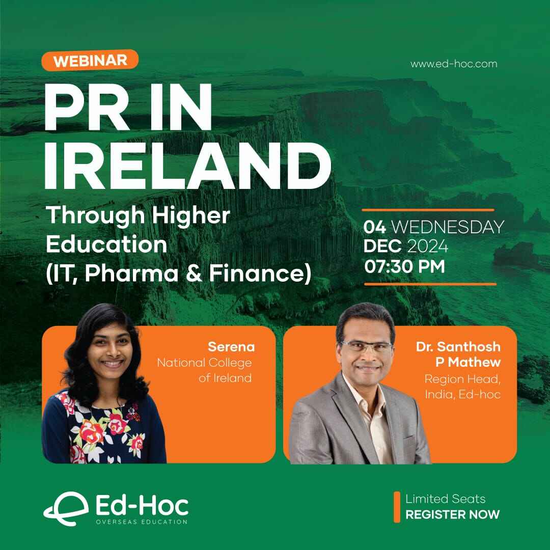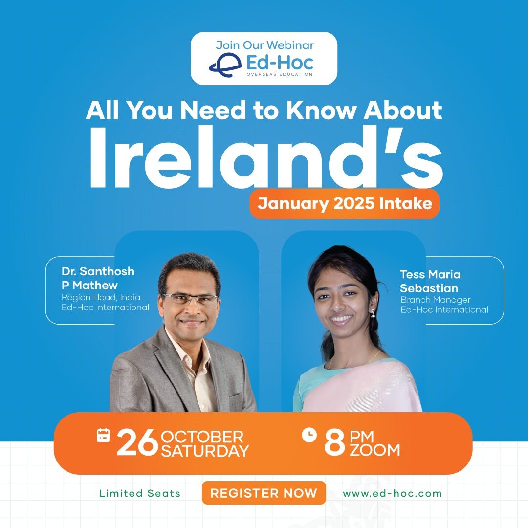 Organised by Ed-Hoc Overseas Education with media partner 24 News, this virtual expo takes place on February 10 & 11, 2025, offering students direct access to university representatives, course details, admission guidance, scholarships, visa support, and career pathways in Ireland.