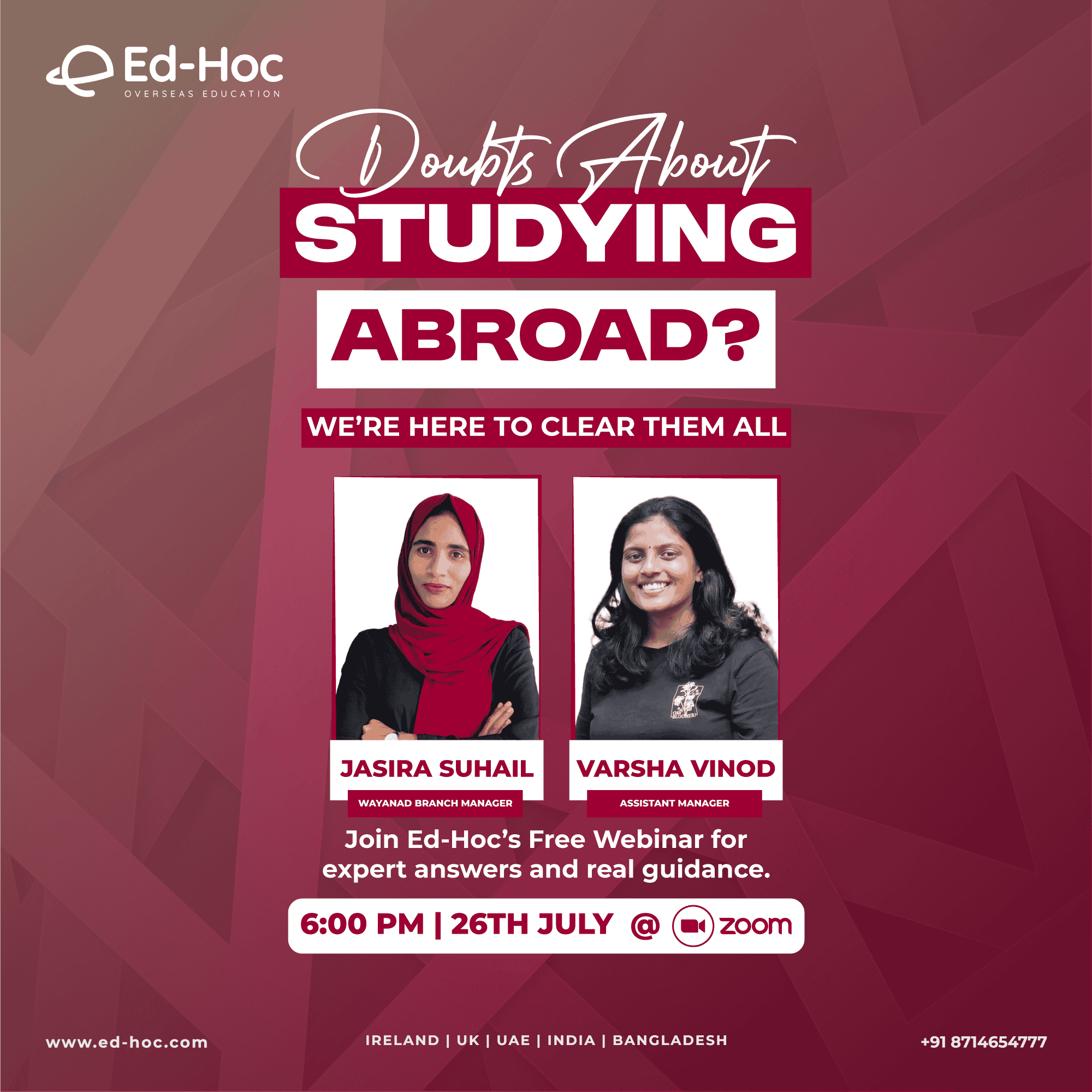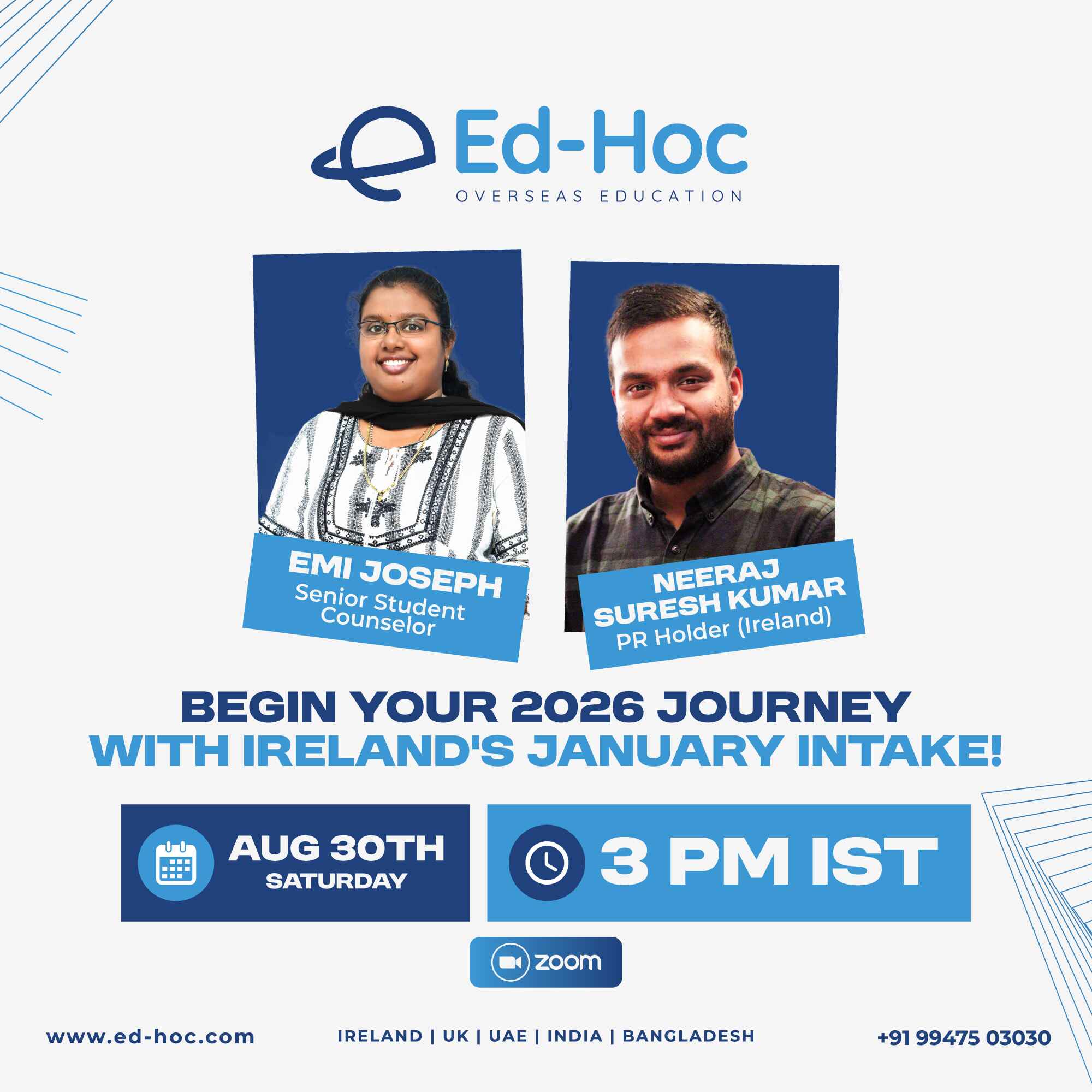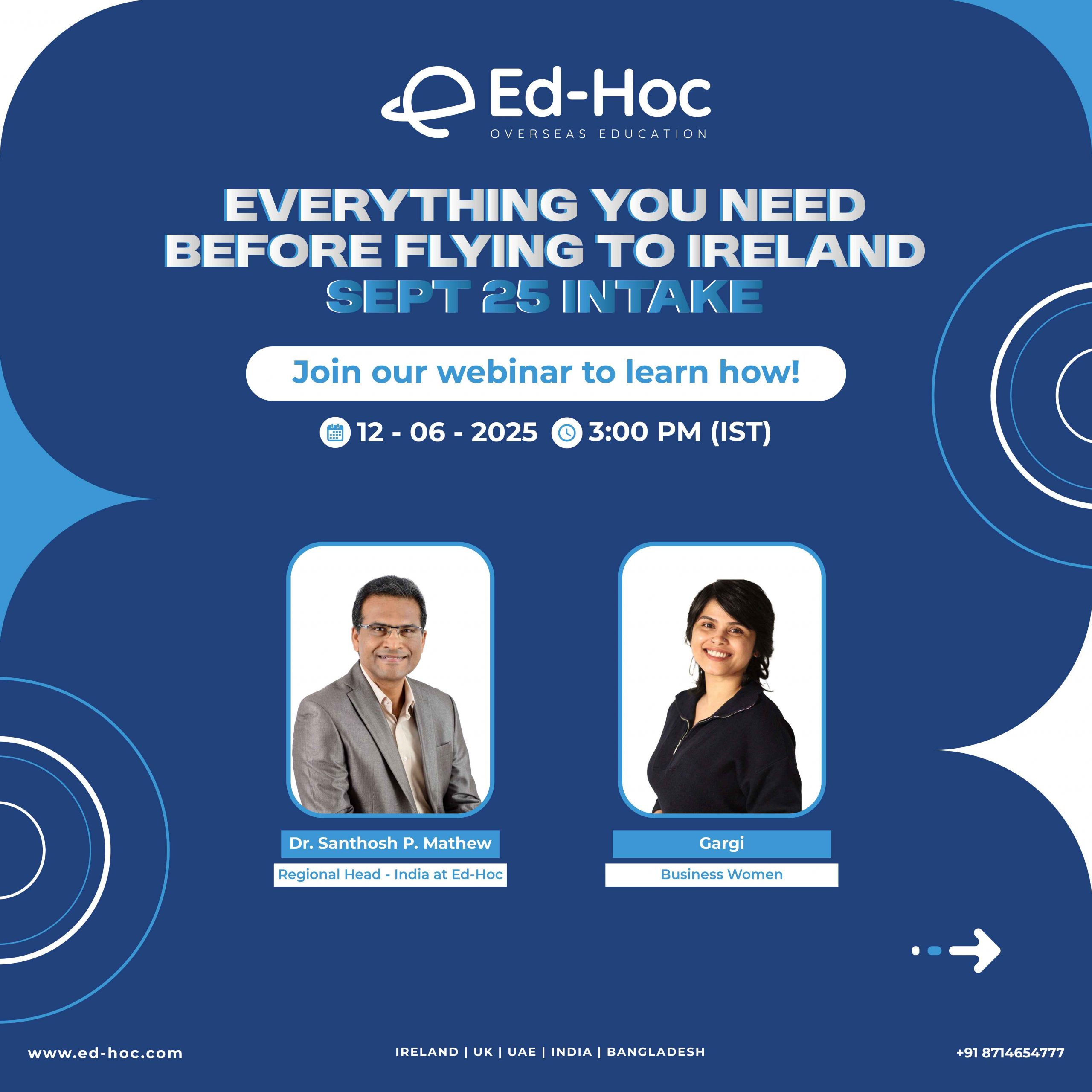 Organised by Ed-Hoc Overseas Education with media partner 24 News, this virtual expo takes place on February 10 & 11, 2025, offering students direct access to university representatives, course details, admission guidance, scholarships, visa support, and career pathways in Ireland.